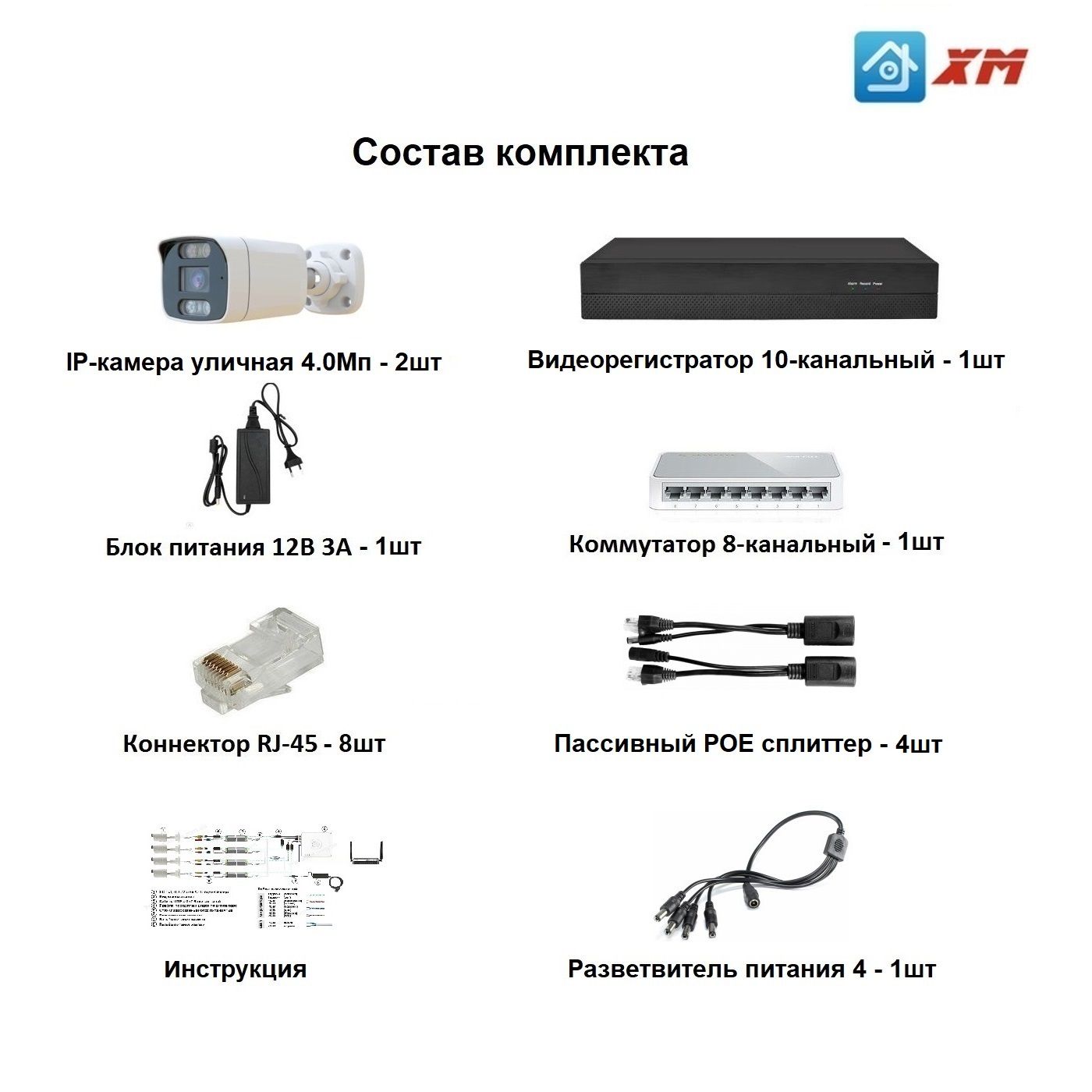 Готовый комплект цифровой системы видеонаблюдения с разрешением 4.0МП со встроенной видеоаналитикой.